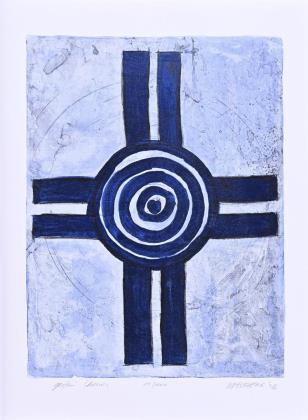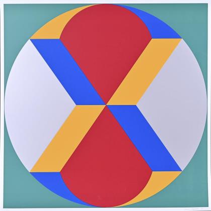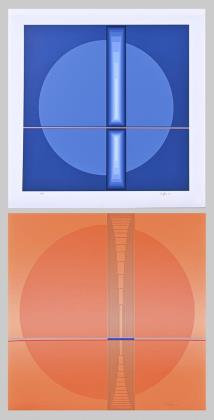 Komposition in Blau, Blatt: 60 x 60 cm, Exemplar: 9/100, [19]83, Ecke unten rechts bestoßen | Komposition in Orange, Blatt: 57 x 57 cm, Künstlerexemplar - "e.a.", [19]85, Oberfläche mit 3 kleinen weißen Flecken