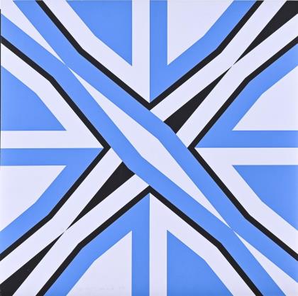 Konkretes Werk in Blau und Grau