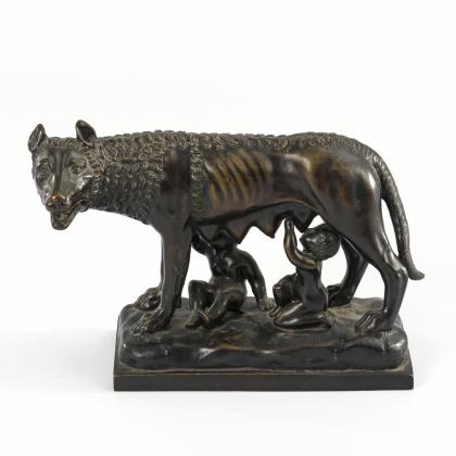 Die berühmte, wohl etruskische Wolfsfigur mit den von Pollaiuolo in der Renaissance hinzugefügten Kindern Romulus und Remus; den Begründern von Rom