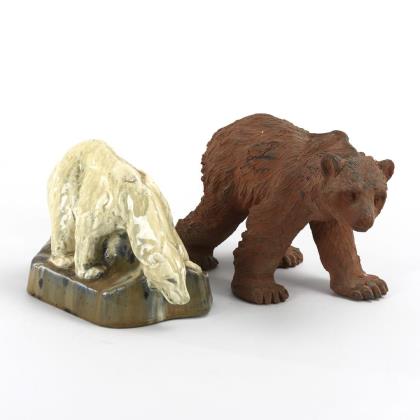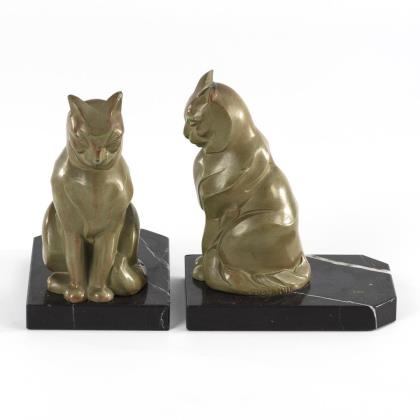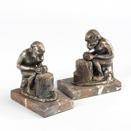RABIER, Benjamin (1864 La Roche-sur-Yon, Vendee - 1939 Faverolles). Paar Buchstützen: Trinkende Affen.