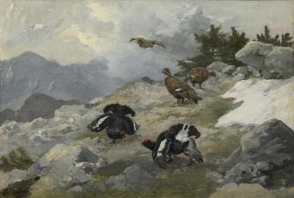 GRÄBHEIN, Wilhelm (1859 Bienstädt - 1931 München). Birkhühner in der Brunft.