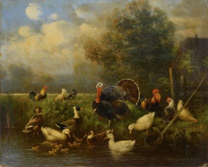SCHEUERER, Otto (1862 München - 1934 ebd.). Geflügelstück mit Truthahn.