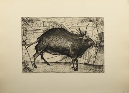 WEISGERBER, Carl (1891 Ahrweiler - 1968). Wildschwein und Jagdhund.