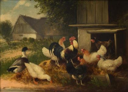 SCHEUERER, Otto (1862 München - 1934 ebd.). Großes Geflügelstück mit Stall.