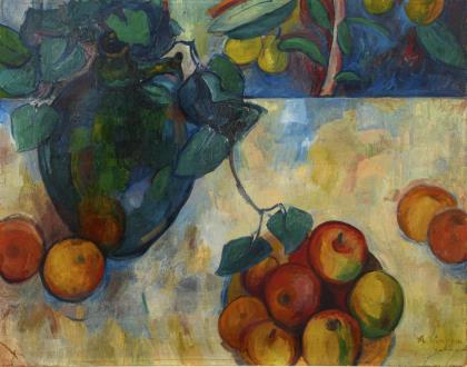 Russischer Künstler: Stillleben mit Äpfeln.