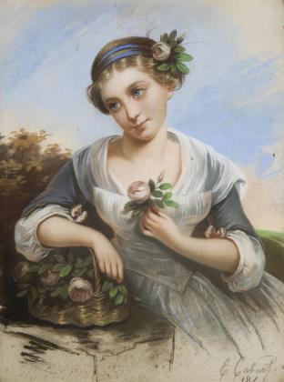 CABART, Ernestine (1812 Paris - 1883 Cherbourg). Mädchen mit Rosen.