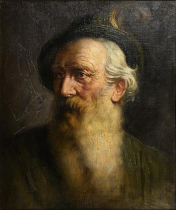 Kraftvolles, virtuos gemaltes Charakter-Porträt mit fast magischer Präzens. Geschwärzter Profilrahmen mit Stuckleiste