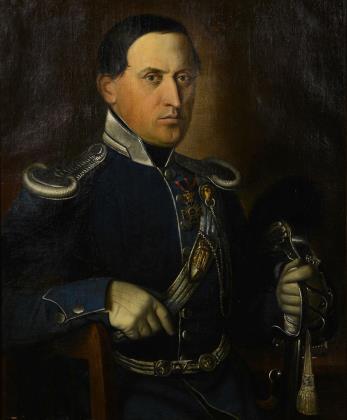 Historismusporträt eines Mannes mit Pfeife.