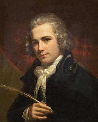 BILDNISMALER ANFANG 19. JAHRHUNDERT. Poet mit Schreibfeder.