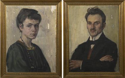 Bildnis eines Mannes und einer Frau in dunklem Anzug und Kleid vor neutralem Hintergrund