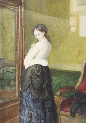 BILDNISMALER ENDE 19. JAHRHUNDERT. Junge Dame, halb entkleidet im Interieur.