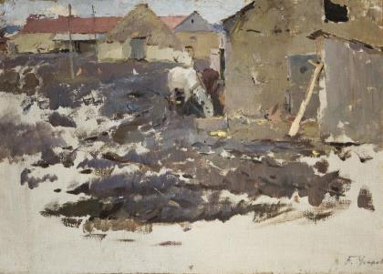 UGAROV, Boris zugeschrieben (1922 Sankt Petersburg - 1991 Sankt Petersburg). Dorflandschaft.
