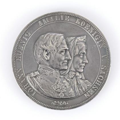 "Iohann Koenig Amalie Koenigin v. Sachsen", mit Doppelporträt, nach rechts schauend. / "1822 10. November 1872"