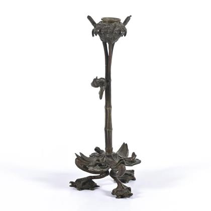 Bronzeleuchter mit Schildkröten und Amphibien.