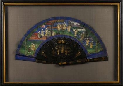 Bemalter chinesischer Fächer in verglastem Rahmen.