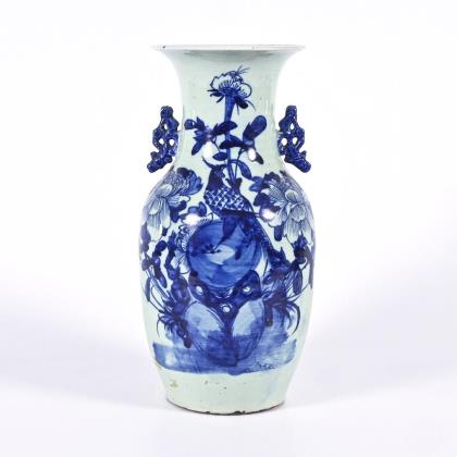 Vase mit Unterglasur-Blaumalerei und Handhaben.