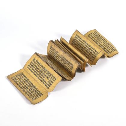Auf 28 Papierblättern handgeschriebener Sanskrit(?)text mit 7 ganzseitigen gemalten Götterdarstellungen