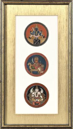 Drei indische Miniaturen im Rahmen.