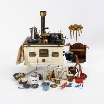 Schöner Puppenherd mit Küchenzubehör. Gebrüder Bing, Nürnberg.