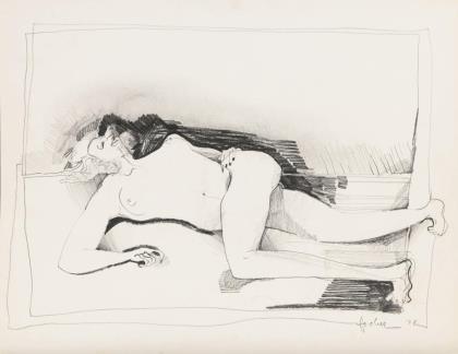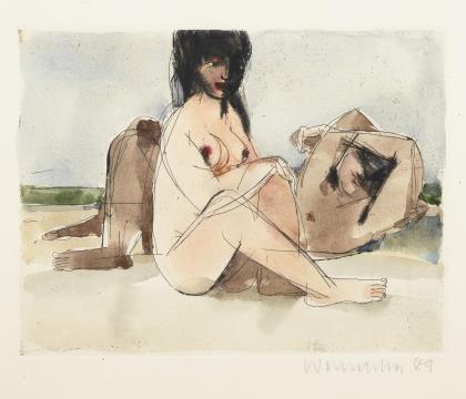 Liegender Akt am Strand.