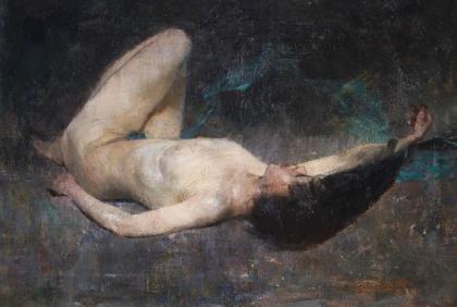 HARTMANN, Carl (1861 Heilbronn - 1927 München). Liegender weiblicher Akt.