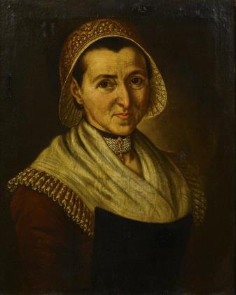 Bildnis einer Frau in einfacher Kleidung vor neutralem Hintergrund