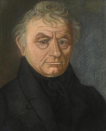 Porträt eines älteren Mannes in schwarzem Anzug mit weißem Kragen vor neutralem Hintergrund