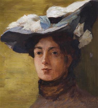 BILDNISMALER 19.-20. JAHRHUNDERT. Jugendstil-Dame mit Federhut.