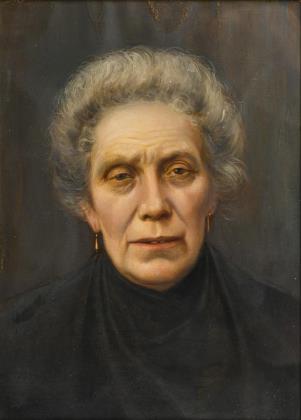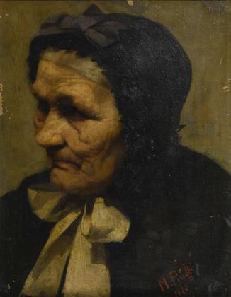 Bildnis einer älteren Frau mit schwarzem Kopftuch