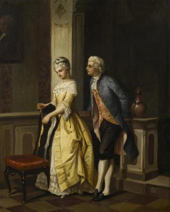 QUAGLIO, Franz (1844 ebd. - 1920 Wasserburg/Inn). Galante Szene mit Reiter und Magd.