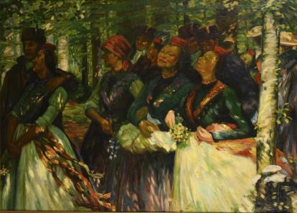 GRÜNWALD, Béla Iványi zugeschrieben (1867 Som - 1940 Budapest). Junge Frau im Blumengarten.