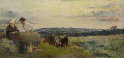 ROSZEZEWSKI, Henri Dominique. Bauernpaar mit Rindern.