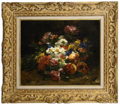 JEANNIN, Georges (1841 Paris - 1925 ebd.). Stillleben mit Blumen und Pfirsichen.