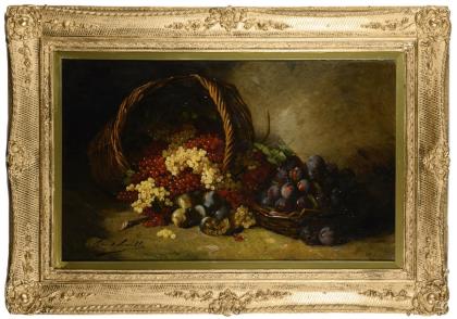 BRUNEL DE NEUVILLE, Alfred Arthur (1852 Paris - 1941). Früchtestillleben Beeren und Pflaumen.