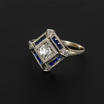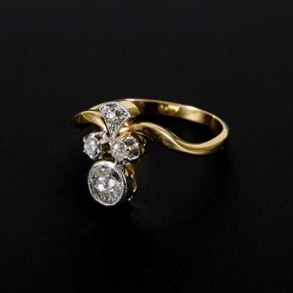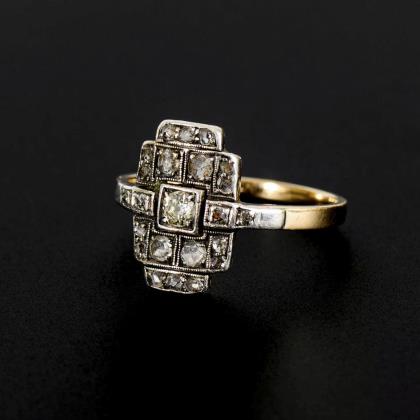 Art-déco-Ring mit Altschliff-Brillanten.