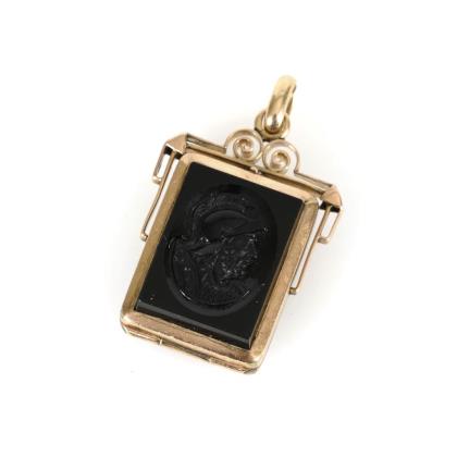 Medaillon mit Karneolgemme und Onyx, um 1900.