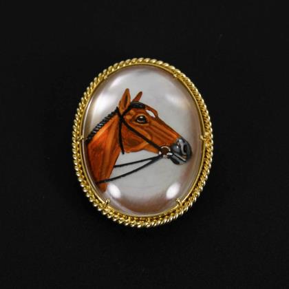 Brosche mit Pferdekopfminiatur.