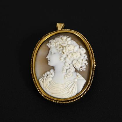 Anhänger/Brosche mit Muschelkamee Ende 19. Jh.