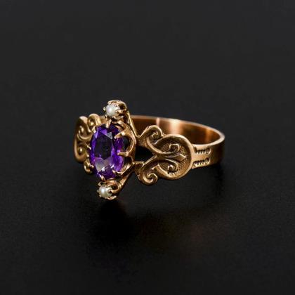 Ring mit Amethyst und Perlchen um 1900.