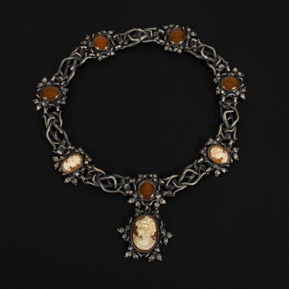 Trachtencollier mit Muschelkameen und Karneolen, Ende 19. Jh.