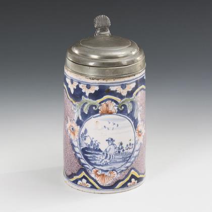 Taubenblauer Fayence-Walzenkrug. Schrezheim.