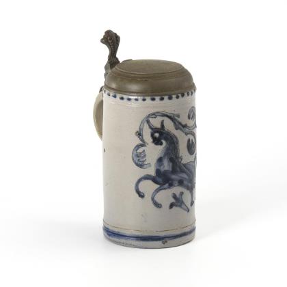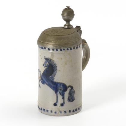 Westerwälder Walzenkrug mit springendem Pferd.