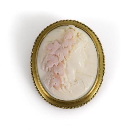 Große Brosche mit Korallenkamee 2. H.19. Jh.