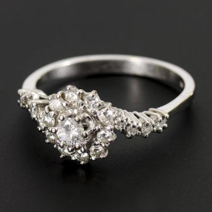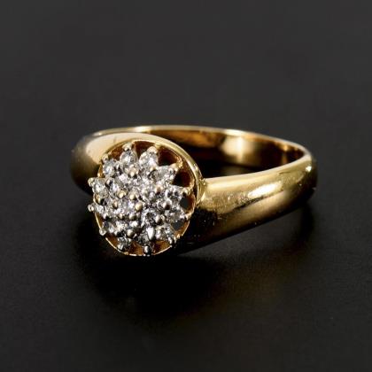 13 Brillanten, umgeben von 22 kleinen, eingelassenen Brillanten, zwischen schmaler Schiene