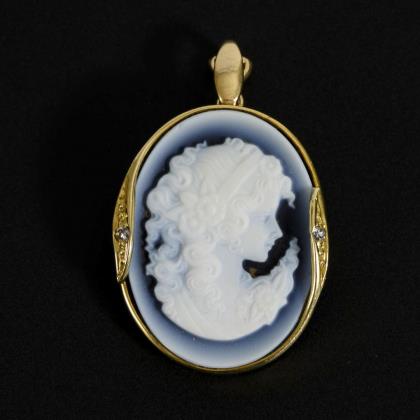 Anhänger/Brosche mit Lagensteinkamee und Brillanten.