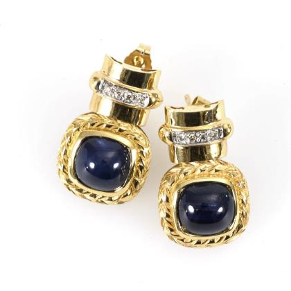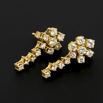 An Brisur mit je 6 chatongefassten Brillanten abnehmbare Abhängung mit je 5 kleineren Steinen. Steckmechanik