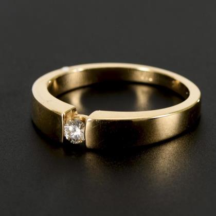 Zargengefasster Brillant und 8 eingelassene Brillanten in mittlerer Schiene