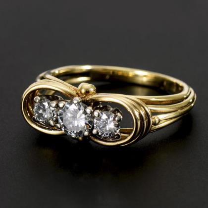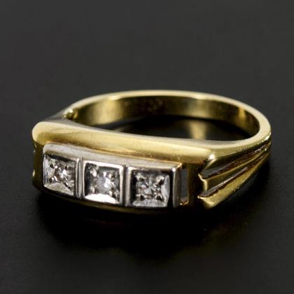 3 chatongefasste Brillanten zwischen mittlerer Schiene.