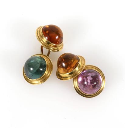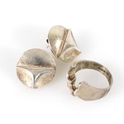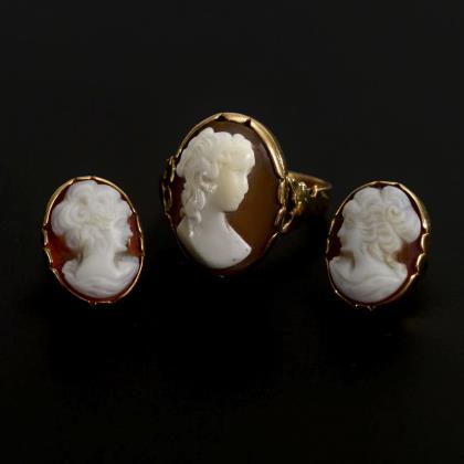 Ring und Ohrsteckerpaar mit Muschelkameen.