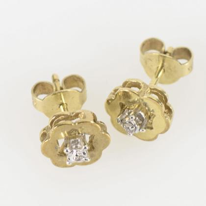 Zargengefasste Brillanten in verziertem Rahmen. Klippmechanik